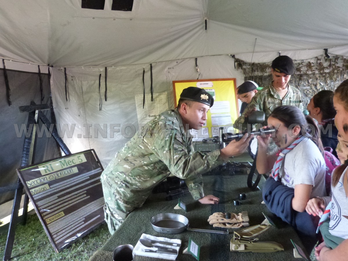 También hubo abundante información respecto de las divisiones internas dentro de la Fuerza, los niños disfrutaron plenamente el día que se prestaba para el aire libre, teniendo la posibilidad de subir a los distintos vehículos expuestos, que los pinten para camuflarse y hasta un polígono de tiro portátil, donde podían probar puntería con un arma cuyos proyectiles eran propulsados por aire, inofensivos para ellos, pero con toda una realidad a su alrededor.