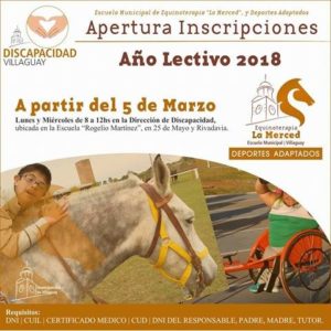 La fecha de comienzo de inscripción será a partir del 5 de marzo, en horario de 8 a 12hs en la Escuela Rogelio Martinez, Oficina de la Direccion de Discapacidad de la Municipalidad.
