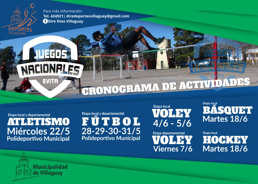 Dirección de Deportes de la Municipalidad de Villaguay informa que el próximo miércoles 22 de Mayo darán comienzo los Juegos Nacionales Evita en la etapa local y departamental en la disciplina Atletismo.