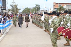 Instituciones intermedias, agrupaciones tradicionalistas, clubes, bomberos voluntarios, fuerzas de seguridad, vehículos blindados de los Regimientos de Caballería de Tanques 1 y de Infantería Mecanizada 5, unidades del Municipio y hasta dos aviones del Aero Club le dieron forma al desfile cívico militar con el que se cerró la celebración oficial.