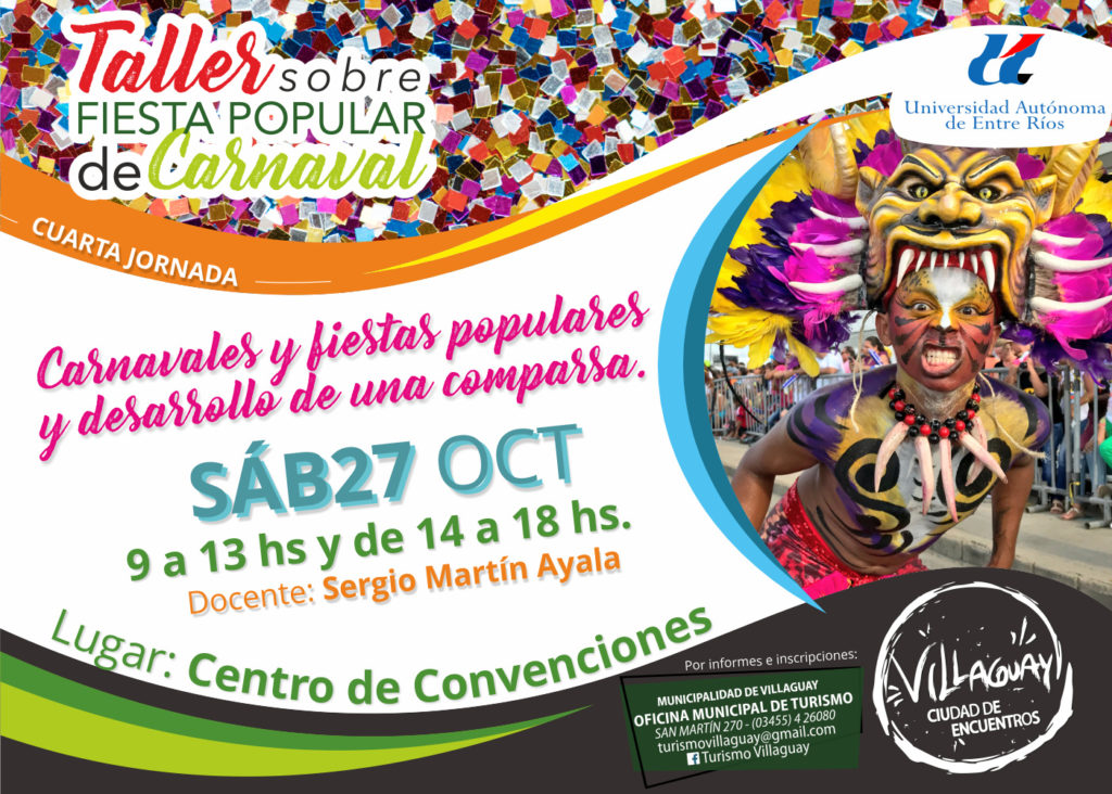Este sábado desde las 9 se realizará en el Centro de Convenciones “Papa Francisco” de nuestra ciudad el último encuentro del Taller de Fiesta Popular de Carnaval, que se viene dictando desde hace varios meses a partir de un convenio entre la Universidad Autónoma de Entre Ríos (UADER) y la Municipalidad de Villaguay.