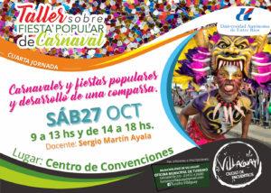 En esta oportunidad, la temática estará vinculada al desarrollo de una comparsa y estará a cargo de Sergio Martín Ayala, director de comparsas en el carnaval de Gualeguaychú y ex director de Cultura de esa ciudad.
