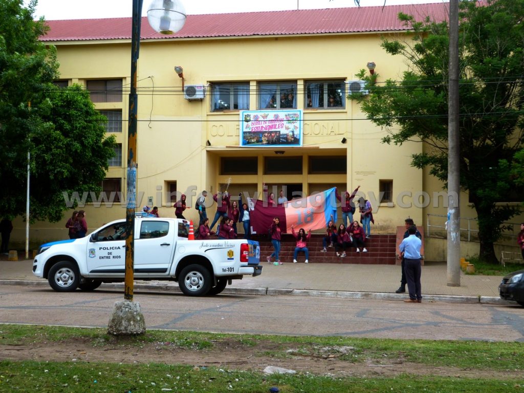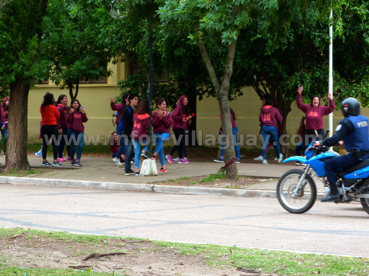 Pretendían ingresar al establecimiento a festejar su ultimo día, con pirotecnia, juegos como del encerado, y tantos otros, pero las autoridades se lo impidieron, pero al verse desbordados por la situación debieron llamar las autoridades policiales a fin de disuadir la actitud de este grupo de chicos.