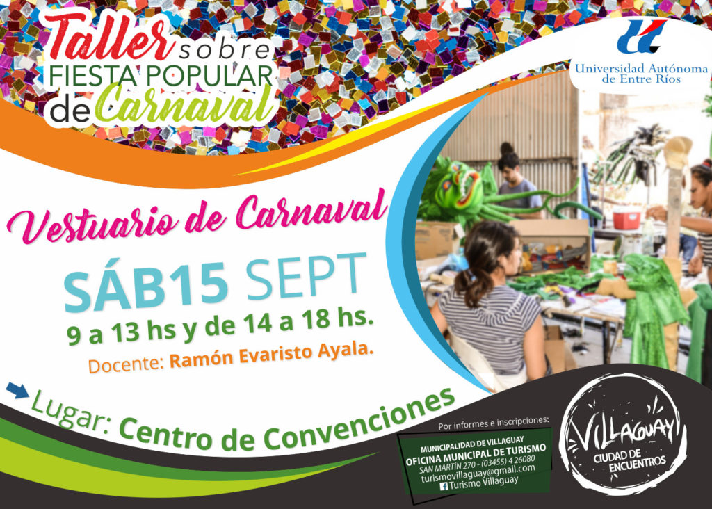 Luego de la reciente firma de un convenio entre la Municipalidad de Villaguay y la Universidad Autónoma de Entre Ríos (UADER), el próximo sábado dará comienzo el dictado de la capacitación profesional sobre Fiesta Provincial del Carnaval. Las inscripciones (gratuitas) se están registrando en la Oficina de Información Turística Municipal, en San Martín 250.