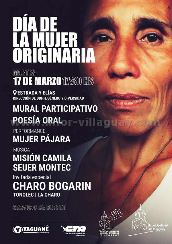 En tanto, el martes 17 de marzo, a partir de las 17 y 30 horas, en la sede de la Dirección, Estrada y Elías, se presentará el mural participativo, poesía oral, Performance “Mujer Pájara”, Música con “Misión Camila” y “Seuer Montec”. Estará como invitada especial la artista “Charo Bogarin”.