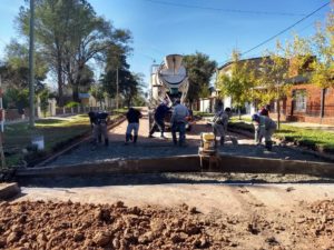 Se ejecuta el hormigonado de calle 25 de Mayo, entre Arrieta y Paysandu como estaba previsto para media mañana de hoy jueves.