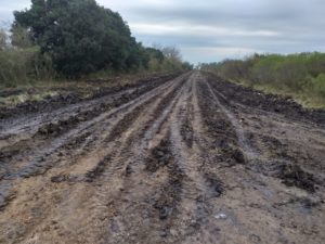 Las tareas que cumple el área de Obras Públicas comprende calle de acceso al Barrio La Esperanza, desde Boulevard Mosconi; así también por calle Rio Negro zona de Barrio La Loma y el camino de ingreso al Parque Balneario local. Como viene ocurriendo en diversos sectores, además del abovedado, se procede a la colocación de material para su mejorado.
