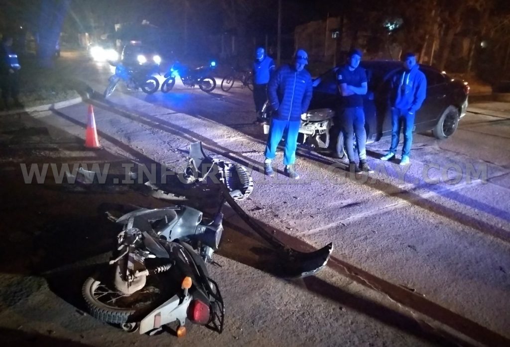 En la noche de ayer, Martes 14 de Agosto se registro un siniestro vial en calle Peron y Concepcion del Uruguay, para el cual intervino personal policial de la Seccion Judiciales. Por razones que se tratan de establecer colisionaron una motocicleta Honda Wabe la cual era conducida por una mujer de 29 años de edad y un automovil Renault Fluence conducido por un masculino de 29 años de edad. A raiz del siniestro la conductora del rodado de menor porte resulto con aparente lesiones por lo que fue traslada hacia el hospital local. Se dio intervencion en el lugar a Fotografo y mecanico policial en turno, en cuanto la conductora de la moto una vez en el hospital se retiro sin haber sido examinada por el medico policial.-