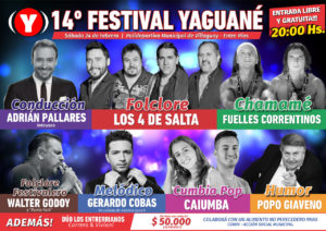 El Festival de Yaguané, que se desarrolla desde 2003, ya es un número puesto en el calendario de festividades de verano en la ciudad. Con la co-conducción de Adrián Pallares de Intrusos y una amplia y diversa cartelera de espectáculos, se asegura el disfrute de toda la familia. El inicio del festival está previsto para las 20.00 hs. “Es un festival familiar, asique empezamos temprano y terminamos temprano”, dijeron desde la empresa.