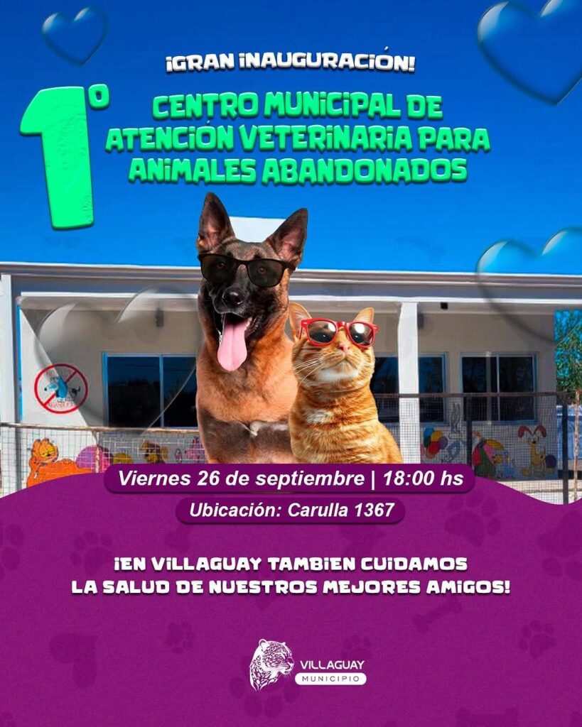 Este viernes 26 se inaugura el 1º CENTRO MUNICIPAL DE ATENCIÓN VETERINARIA PARA ANIMALES ABANDONADOS , a las 18:00 hs en calle Carulla 1367.