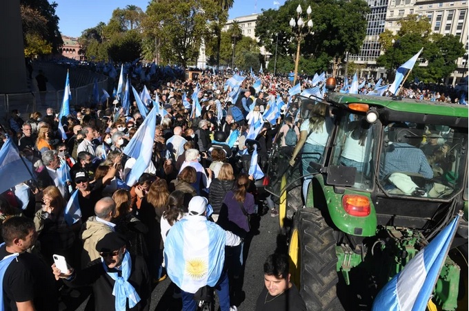 El campo encabezó ayer una multitudinaria movilización a Plaza de Mayo con reclamos al Gobierno de reducir la carga impositiva y el gasto público, pero también con mensajes directos al resto de la clase política. La movida reflejó un alto descontento con el rumbo del país, y la preocupación sobre la falta de políticas que solucionen los problemas de la gente, como la pobreza e indigencia. En medio de la crisis, el sector agropecuario realiza un enorme aporte de la mano de las divisas por exportación y el pago de los tributos.