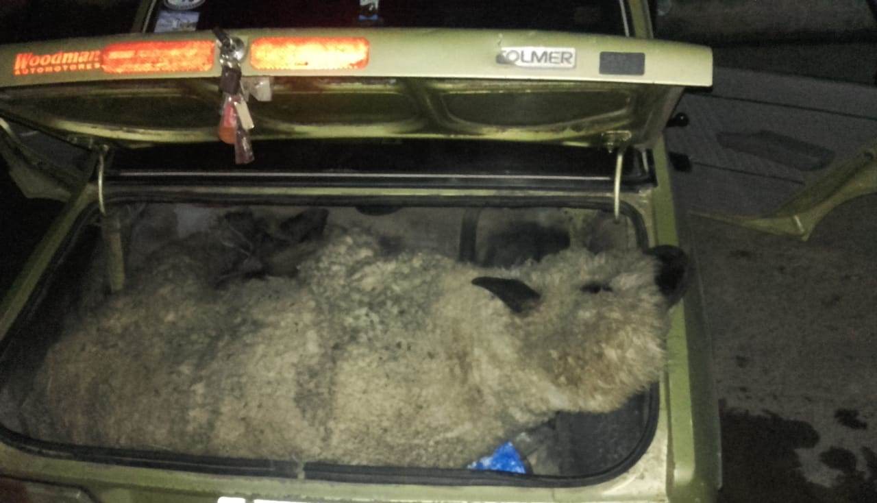 PERSONAL POLICIAL TOMA CONOCIMIENTO QUE DOS RODADOS CIRCULABAN EN ACTITUD SOSPECHOSA EN RUTA 23 A LA ALTURA DEL KM 3. LUEGO AL CONSTATARSE LA PRESENCIA DE UN RENAULT 12 COLOR CLARO, OCUPADO POR TRES MASCULINOS, QUE EN SU BAÚL TENDRÍAN OVINOS VIVOS, GALLINAS VIVAS Y OTROS ELEMENTOS. SE COMUNICA LA NOVEDAD AL FISCAL DE TURNO DISPONE LA APREHENSIÓN EN FLAGRANCIA DE LOS TRES SUJETOS, EL SECUESTRO DE UN RODADO Y ELEMENTOS DE INTERÉS PARA LA CAUSA, QUE FUERON SUSTRAÍDOS DE UN ESTABLECIMIENTO RURAL.