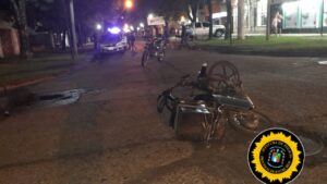 Por razones que se tratan de establecer colisionan una Motomel 110 cc, conducida por un joven de 19 años, y que circulaba por calle Balcarce de Sur a Norte; y una camioneta Chevrolet S10, conducida por un hombre de 83 años, que circulaba por Matheu de Oeste a Este.