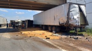 El conductor de 45 años, oriundo de Monte Ralo , manifestó que impacto con un tractor Marca Pauny con cortadora de maleza que se encontraba a la vera de la calzada y luego colisiona con un segundo camión detenido debajo del «puente Ciego» entre los accesos de Oncativo y Manfredi, cuyo conductor de 61 estaba descansando y resulta lesionado.