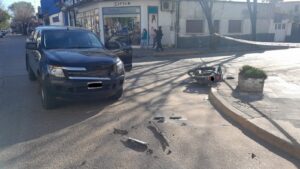 El siniestro ocurrió entre una camioneta marca Ford modelo Ranger conducida por una mujer de 44 años oriunda de Villa Clara, quien circulaba por calle San Martín sentido Norte-Sur, y un motovehículo marca Honda modelo Wave la cual se dirigía por calle Colón sentido Oeste-Este conducida por un hombre de 26 años siendo acompañado por otro ciudadano de 26 años; a raíz del impacto los masculinos del rodado de menor porte fueron trasladados en ambulancia hacia nosocomio local, siendo examinados por el médico de policía en turno, resultando uno de ellos ileso y el restante con lesiones de carácter leves.