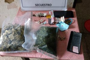 En cuanto al segundo, se procedió al formal secuestro de 4 envoltorios de nylon conteniendo en su interior sustancia estupefaciente marihuana 137 grs, 157 grs de hojas de coca, dinero en efectivo, varios blíster de fármacos, 01 teléfono celular, 10 cartuchos calibre .22, elementos de corte y fraccionamiento. En este procedimiento se identificaron a tres personas (un masculino y dos femeninas) quedando a disposición de las autoridades judiciales y supeditados a la causa investigada, por la supuesta infracción a la Ley Provincial N° 10.566 “Narcomenudeo”.