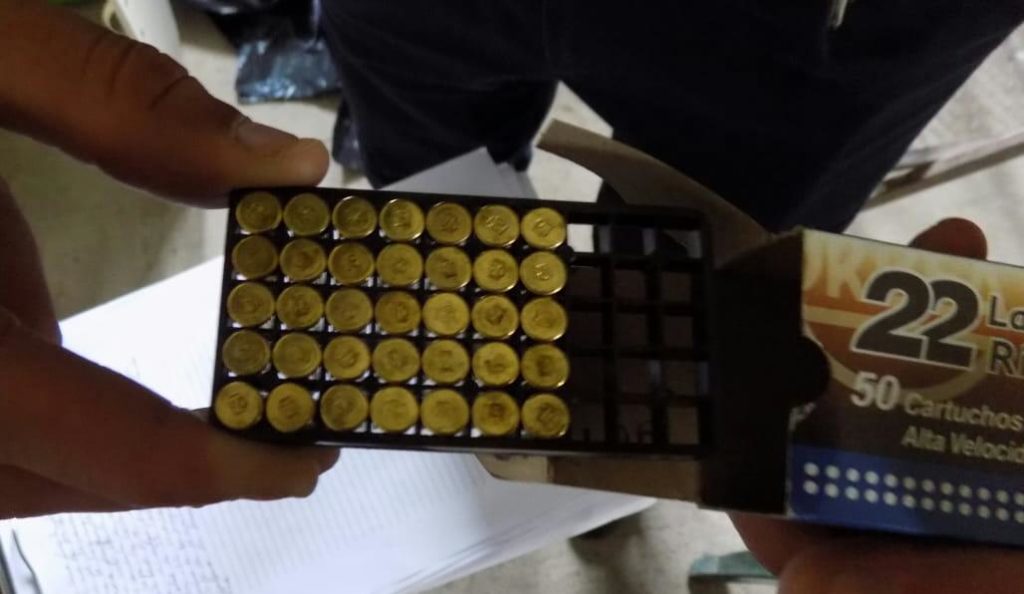 Arrojando como resultado positivo, logrando el formal  secuestro de una caja de cartuchería calibre .22 largo, marca Orbea, conteniendo en su interior treinta y cinco (35) cartuchos, asimismo se procedió con la detención de un joven de 28 años de edad, quien fue trasladado a Jefatura  en calidad de detenido, siendo examinado por el médico policial. En tanto en la otra vivienda se secuestró de una vaina servida y un proyectil de plomo deformado, posiblemente mismo calibre .22, trasladando a Jefatura a un hombre de 36 años de edad, quien luego de ser examinado por el médico policial en turno y realizarle ficha de antecedentes,  recupera  libertad.