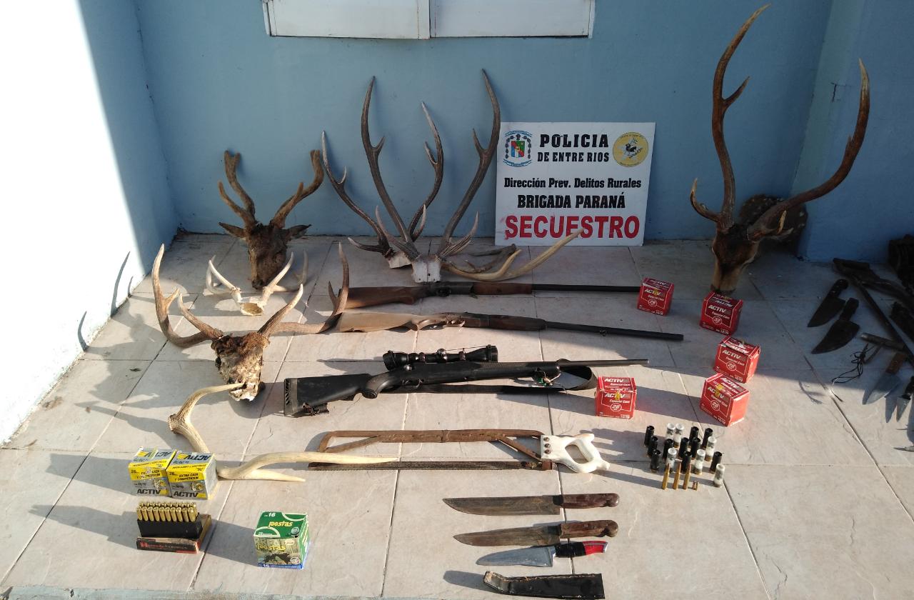 En la fecha personalBrigada Abigeato Paraná y Comisaria Curtiemvre, efectuaron 3 Allanamientos con Resultados altamente Positivos. Los mismo se realizaron a raíz de un vecino que fue víctima de muerte de sus animales de parte de cazadores. Las medidas se llevaron a cabo en Colonia San Martin, Curtiembre y de extendieron hacia la Ciudad de Parana, secuestrandose 06 armas de fuego (FUSIL ESCOPETAS CARABINAS Y REBOLVER); gran cantidad de elementos relacionado con la caza furtiva, carne vacuna y de animales de la.fauna Silvestre (guazuncho ciervos chanchos carpinchos) cortes que fueron desnaturalizados en presencia de su propietario.-