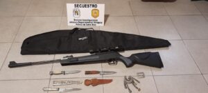 El procedimiento obtuvo como resultado positivo en una de las fincas el secuestro de: armas blancas, armas de fuego, prenda de vestir y un vehículo.
