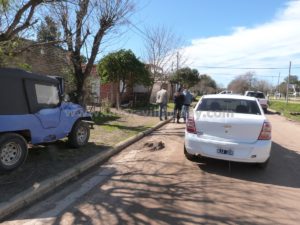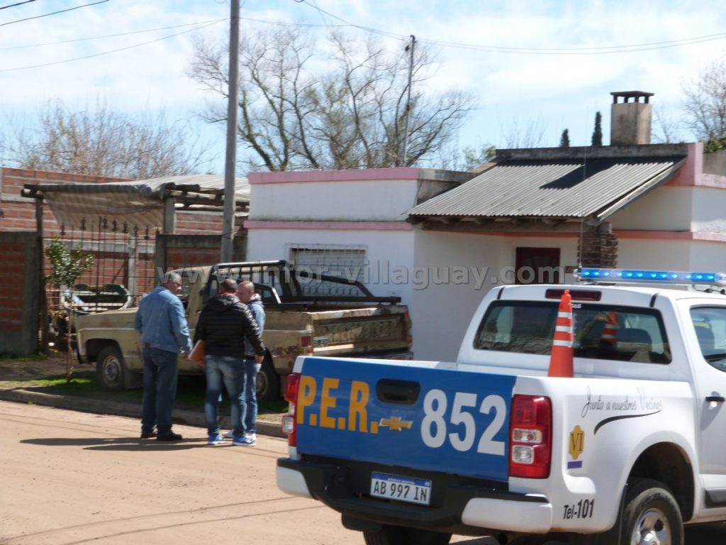 En el lugar vimos trabajando personal dependiente de la Jefatura Departamental de policía de Villaguay realizando tareas investigativas para dar con el paradero del agresor que seria del barrio Las Rosas y realizando planimetria.