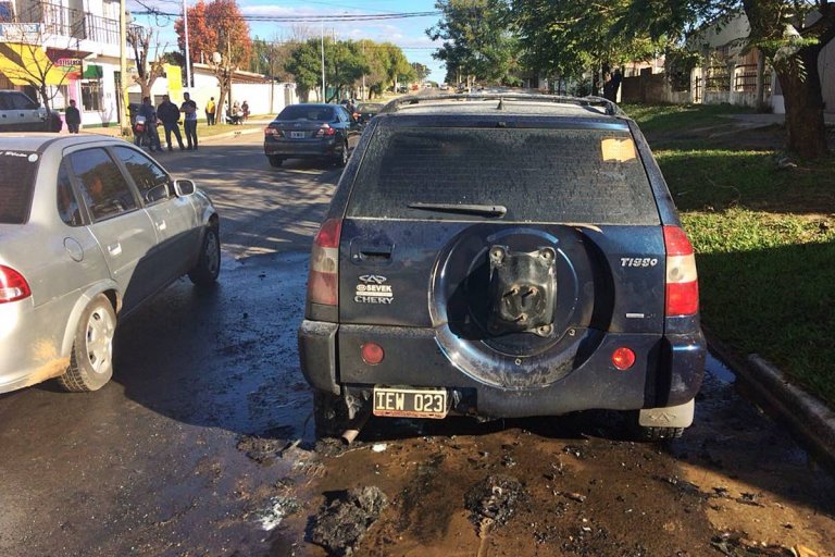 Según las primeras estimaciones extraoficiales, la llamas se podrían haber generado por una pérdida de nafta en una de las mangueras del circuito de la camioneta Chery Tiggo, dominio IEW 023.