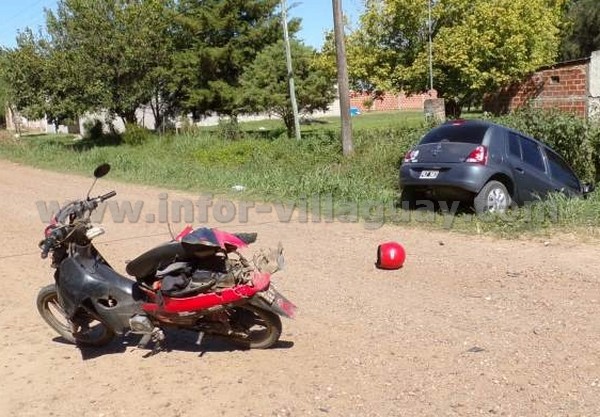 Siendo las 14:50 se toma conocimiento de un siniestro vial en la intersección de Calles Federick y Federación, en la que se vieron involucrados un automóvil Renault Clío que era conducido por una señora de 62 años, con domicilio en calle Arrieta y una moto marca Zanella ZB110D en la que transitaba un señor de 51 años de edad, domiciliado en calle Rio Negro y Los Lirios. Ambos conductores fueron conducidos al Hospital Santa Rosa donde fueron examinados por el médico de policía de turno quien determinó lesiones de carácter leves en la mujer en tanto que el motociclista poseía lesiones de carácter graves por escoriaciones varias y traumatismo de hemitorax derecho. Informadas las autoridades judiciales dispusieron la entrega de ambos vehículos a sus respectivos familiares. Intervino además personal de Criminalística para el relevamiento Planimétrico y Fotográfico del lugar del siniestro.