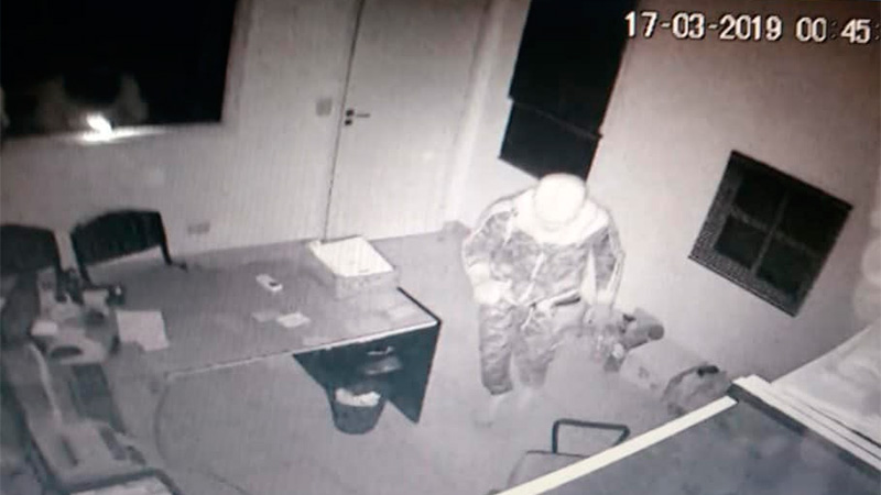 En las imágenes, se puede ver que los sujetos, intentaron inutilizar las cámaras de seguridad, no pudiendo evitar que una de ellas, “camuflada” en un sensor de movimiento de la alarma (desactivada), los captara en “plena acción”.