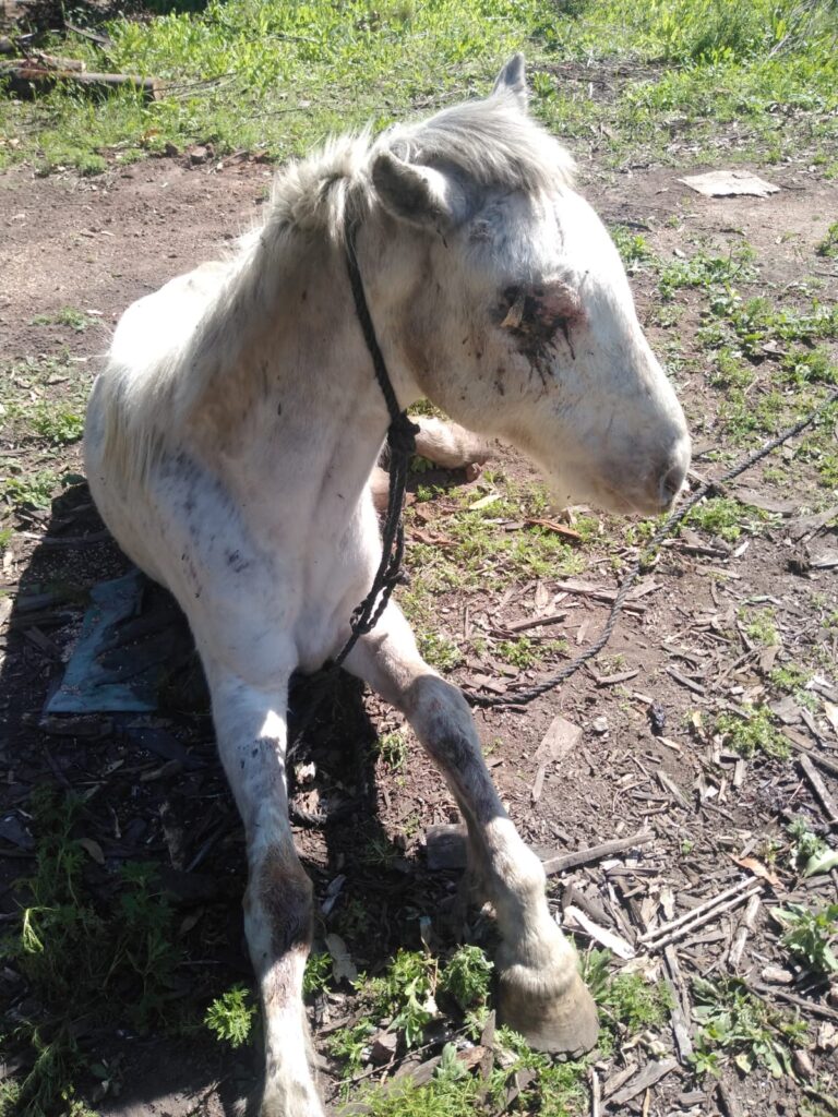 En las diligencias llevadas a cabo, se pudo constatar un acto atroz contra la vida animal ya que a uno de los equinos le habrían extirpado ambos ojos, encontrándose con vida atado a una cuerda, sin tener ningún tipo de atención, siendo este el principal motivo de la denuncia.