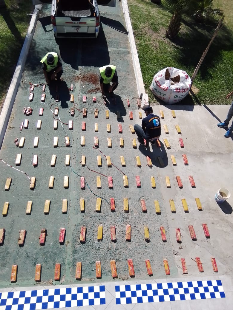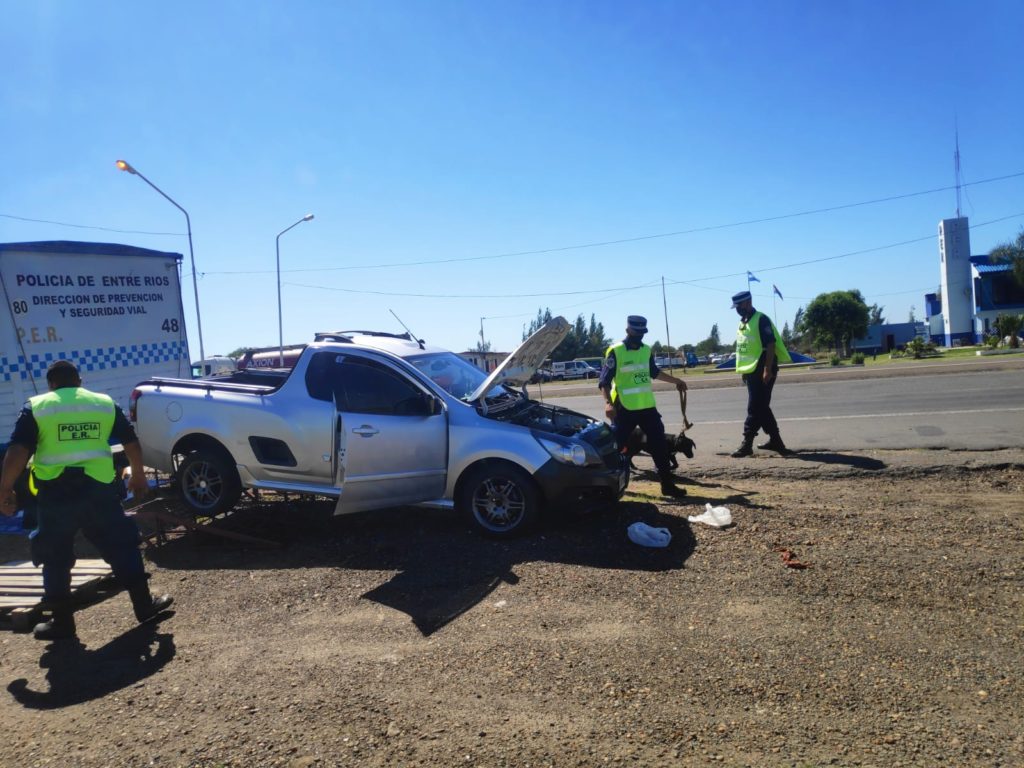 El procedimiento se inicio media mañana del dia de hoy extendiéndose en horas de la tarde cuando personal policial de la Direccionde Prevencion y Seguridad Vial, dependientesde la Policia de la provincia de Entre Ríos, destacados los mismos en el puesto Caminero Paso Cerrito, en su inclaudicable labor de prevencion publica, detuvieron la marcha de un utilitario marca Chevrolet modelo Montana la cual era conducido por un hombre mayor de edad domiciliado en la localidad de Montecarlo, provincia de Misiones. Una vez efectuado el control primitivo de la unidad y su documentacion requerible al transito se avanza en el contralor observandose anomalías en la carrocería de la misma. Es por ello que se procede a realizar un control más minucioso y se realiza un pasaje con el can narco detector Janna y su guia natural, animal que inmediatamente adopta conductas características ante la presencia de estupefacientes. Ante esto se da inmediata intervencion a la División Toxicología de la Jefatura de Policia Departamental Federación personal este que dando debido anoticiamiento a la autoridad jurisdiccional federal realiza requiza de urgencia hallando en un doble fondo del rodado la cantidad de 125 envoltorios tipo panes recubiertos de nylon color marrón, a los que se le realiza test de orientativo de campo arrojando un resultado positivo para Cannabis Sativa, los mismos son formalmente secuestrados arrojando un peso total de 89,145 kilogramos. Ademas se dispuso la inmediata detencion e incomunicación del conductor por infraccion a la Ley Nacional 23.737, Ley de Estupefacientes, secuestro del automotor y telefonía celular hallado.