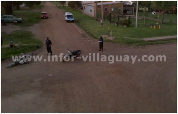 Se registró a las 18:15 horas de ayer lunes 19 de abril en calles San Luis y Ventura Fernandez. Por razones que se tratan de establecer colisionaron una moto marca Motomel 110 cc, en la que se conducía una mujer de 26 años de edad junto a sus dos hijos menores 08 y 04 años y que circulaba por calle Ventura fernandez de sur a norte; y otra Motomel CX 150 CC en la que circulaba un hombre de 21 años de edad que circulaba por san Luis de este a oeste. A raíz del siniestro los menores fueron trasladados hacia el Hospital Santa Rosa Informando posteriormente el galeno de turno que ambos presentaban lesiones de carácter leves (múltiples excoriaciones), en cuanto los conductores no presentaron lesiones. Trabajaron en el lugar personal del comando radioeléctrico, Sección Judiciales y Criminalística.-