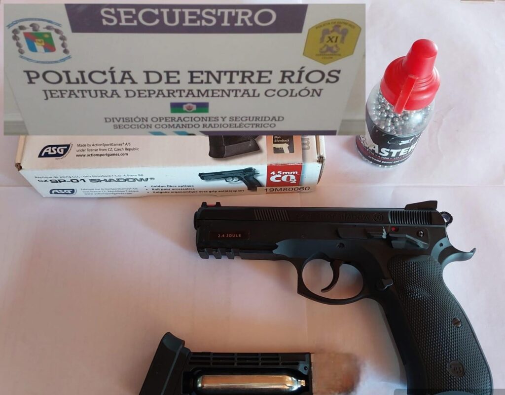 Este procedimiento se llevó a cabo en horas del mediodía de la víspera, por personal policial en donde procedieron a dar cumplimiento de un oficio de allanamiento y registro domiciliario, ordenado por el Juzgado de Familia y Penal de Niños y Adolescentes en inmediaciones del Km 150 de la Autovia G. Artigas, el cual finalizó con resultados positivos de una arma tipo pistola Airsoft, de aire comprimido, ( réplica de 9 mm).