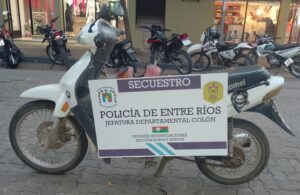 Personal de Investigaciones de Colón Recupera motocicleta Sustraída En el marco de una pesquisa por un hurto de una motocicleta, llevada a cabo tras la denuncia interpuesta en el día de la fecha, el personal de la División de Investigaciones de la Jefatura Departamental, logró en horas de la tarde importantes avances. Tras un meticuloso trabajo de pesquisa, en base a la denuncia presentada, se emprendieron una serie de averiguaciones que llevaron al equipo a recorrer las inmediaciones de la calle Edda Bachini, entre Alberdi y Chacabuco, en la ciudad de Colón. Fue en este proceso que se logró avistar el vehículo reportado como sustraído apenas una hora antes, estacionado frente al complejo Lazarina Lambert de Sardou, precisamente en el acceso al Jardín de Infantes, sin presencia de individuos cercanos. De manera inmediata, se informó de los hechos a la Agente Fiscal Auxiliar Nº 1, la Dra. Micaela DI PRETORO, quien dispuso el secuestro del rodado, siendo este de marca Motomel, modelo Blitz, de 110 cc. Esta acción se llevó a cabo con el propósito de restituir el vehículo a su legítimo propietario, en cumplimiento de las directivas de la autoridad competente.