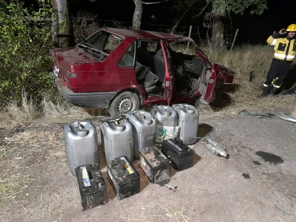 Esta madrugada, personal de Comisaría Arroyo Barú, a raíz de tomar intervención en un despiste en camino vecinal de colonia Maipú, lugar donde se encontró un Fiat Duna, que momentos antes iba conducido por un masculino de 35 años que iba en compañía de su hijo de 12. Constatan e Inician actuaciones de oficio a raíz visualizar dentro del rodado cinco bidones de 20 litros conteniendo gasoil, cuatro baterías, un motor de arranque y una llave francesa, elementos que fueron sustraídos en un campo ubicado en inmediaciones del accidente y que fueron reconocidos por su propietario. Se informa lo acontecido a la Unidad Fiscal de Colón y se realiza el formal secuestro de los bienes encontrados, quedando supeditado a la causa el sujeto de 35 años que iba a bordo del vehículo accidentado.