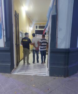 En relación a una causa que se inició en el dia de la fecha de Oficio por el supuesto delito de Robo a un vecino de 60 años de edad, a raíz de tareas realizadas por Personal de esta Departamental, luego de averiguaciones practicadas, con conocimiento de la unidad fiscal se procede a realizar un Allanamiento y requisa domiciliaria en una vivienda ubicada sobre Cantón de Valais, lugar donde se procedió al formal secuestro de prendas de vestir, como así también se procedió a la detención de un masculino 36 años de edad, oriundo de Colon, el cual por disposición del Fiscal en Turno a cargo del Dr. Perroud alejandro quedó alojado en esta Jefatura Departamental, destacando que en el lugar donde suscitó el hecho luego de una amplia búsqueda de los indicios personal policial recuperó las pertenencias del damnificado .