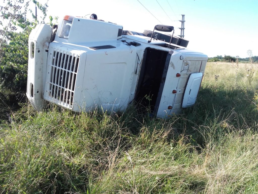 EN LA VÍSPERA PERSONAL POLICIAL TOMA CONOCIMIENTO E INTERVIENE EN UN ACCIDENTE DE TRÁNSITO OCURRIDO EN CAMINO VECINAL, CONOCIDO COMO CAMINO LA MATILDE, CONTINUACIÓN DE AVENIDA URQUIZA DE VILLA ELISA. CONSTITUIDOS EN EL LUGAR LOS EFECTIVOS POLICIALES VISUALIZAN UN CAMIÓN VOLCADO, SIENDO ESTE, UN MERCEDES BENZ, COLOR BLANCO, SIN SEMI NI ACOPLADO, QUIEN LO CONDUCÍA UN MASCULINO DE 31 AÑOS DE EDAD QUIEN IBA ACOMPAÑADO E SU HIJO DE 13 AÑOS. NO RESULTARON LESIONADOS.