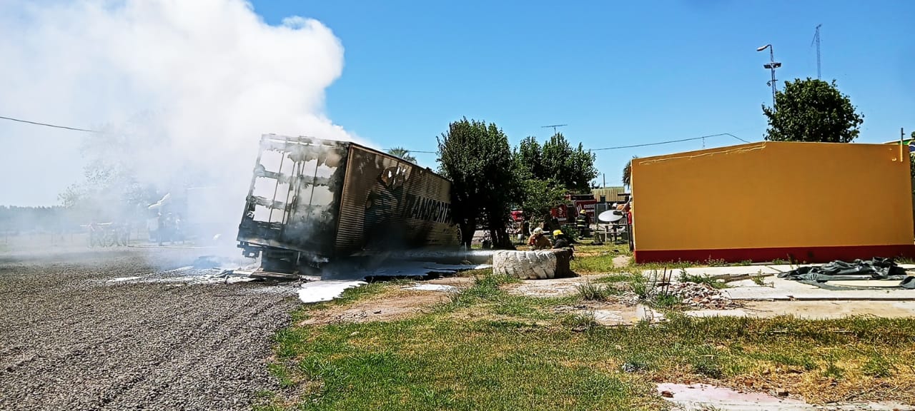 El personal actuante procedió a delimitar la zona para facilitar la tarea de Bomberos Voluntarios, teniendo en cuenta el riesgo latente, ya que el siniestro se produjo en la playa de estacionamiento de la estación de servicio existente allí. Los bomberos lograron controlar el foco ígneo del vehículo involucrado, el cual estaba cargado con comidas ligeras. Manifestó su chofer que luego de cargar combustible, estacionó el equipo y en momentos que se dirigía a retirar la factura respectiva, escuchó las explosiones de las ruedas del semi por el fuego que se había iniciado, por lo que de inmediato el encargado de playa avisó a Bomberos y Policía. No hubo ninguna persona lesionada, solo daños materiales. La posible causa de lo sucedido, habría sido una falla en el sistema de frenos.