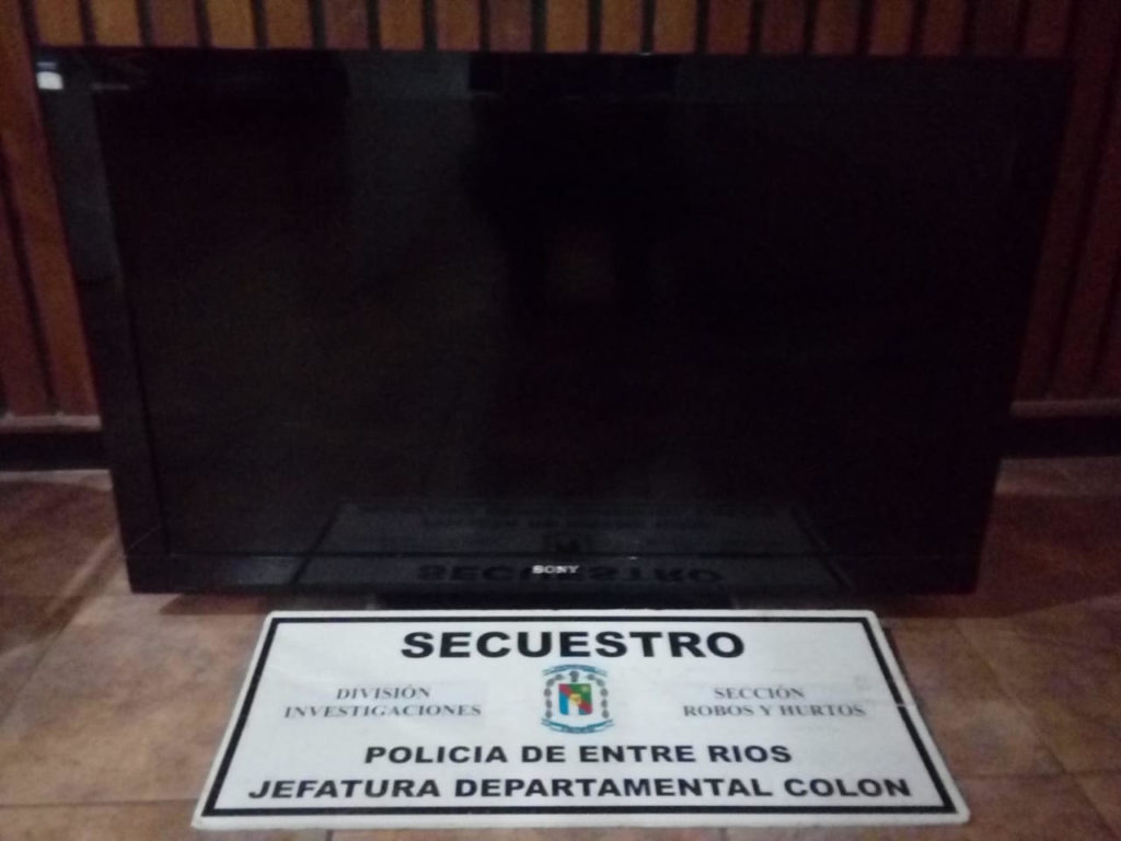 PERSONAL DE DIVISIÓN INVESTIGACIONES DE COLÓN, RECUPERÓ UN TV. DE 40” DENUNCIADO COMO SUSTRAÍDO –SUPUESTO AUTOR DEL ILÍCITO YA ESTABA DETENIDO DESDE AYER POR OTRO DELITO.-En el día de hoy y en relación a una denuncia radicada en Jefatura de Colón en fecha 28 de Marzo ppdo., por la sustracción de un televisor marca SONY de 40 pulgadas; personal de División Investigaciones venía realizando tareas investigativas al respecto, tal es así que las mismas dieron sus frutos, ya que a las 13.30 horas se recuperó el aparato mencionado, Luego de haberse constatado que se trata del denunciado como sustraído, por disposición de la Fiscalía en Turno de Colón se procedió a su formal secuestro y puesta a disposición de la causa. El supuesto autor del delito se encuentra detenido y alojado en Jefatura Departamental. Se destaca que se trata del masculino de 27 años de edad que fue detenido en la noche de ayer por otro delito.-