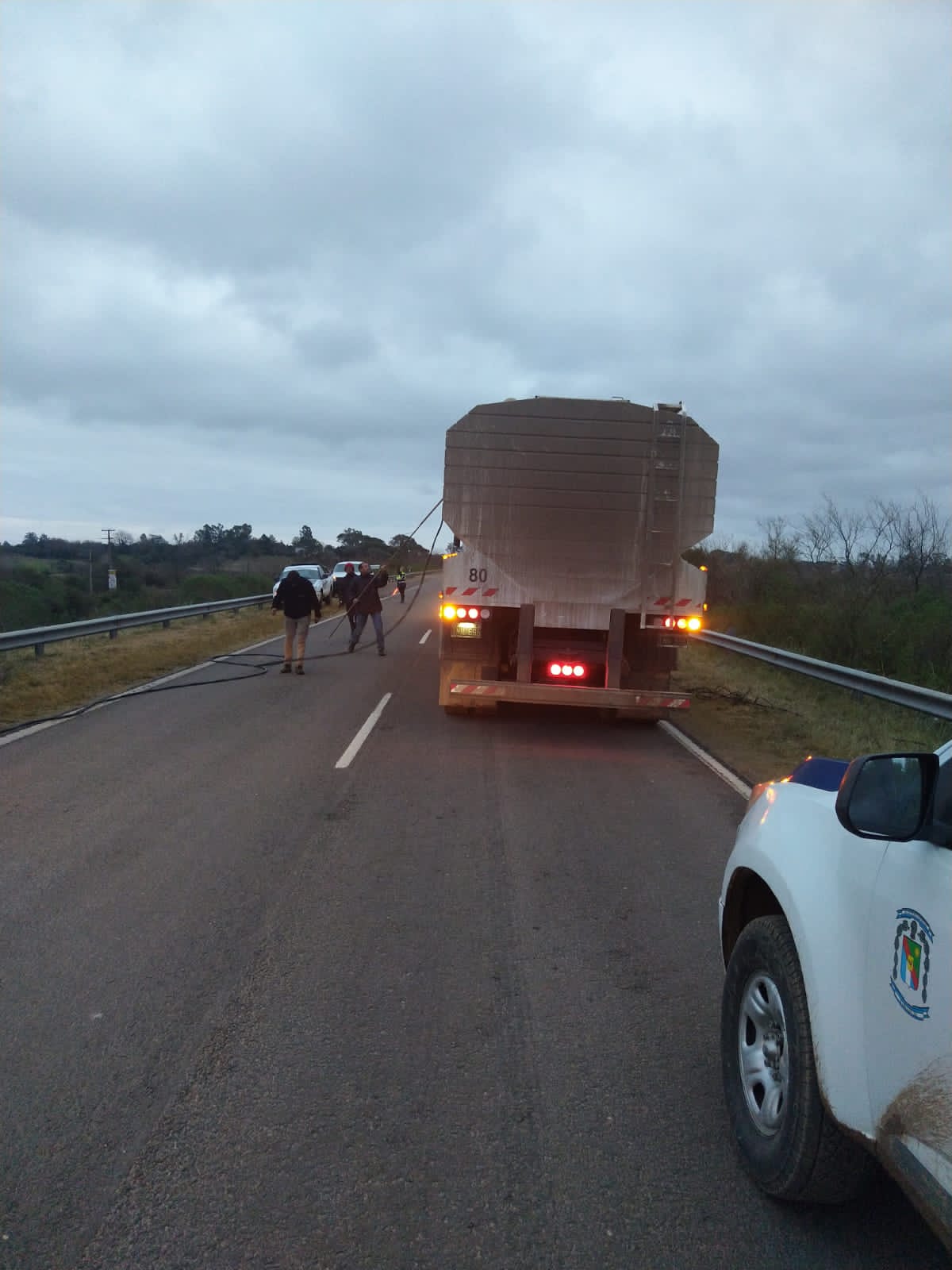 En horas de la tarde, Personal Policial interviene en Ruta Nac. 135, km 10, a raíz que un camión «tolva», marca Mercedes Benz modelo 1634, circulaba en sentido Sur- Norte, conducido por un masculino, de 35 años, y por causas a establecer había enganchado y cortado unos cables encontrándose restringido la circulación a un solo carril lográndose solucionar el inconveniente, restableciéndose el tránsito de forma normal por ambos carriles. Intervino Inspección Municipal de Colon, Personal Comando Radioeléctrico local.