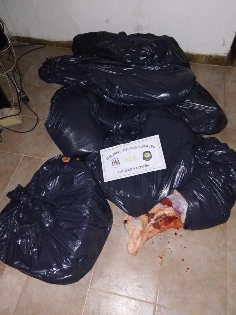 A las 00.45 horas de la fecha, personal de Brigada de Abigeato Colón, se encontraba realizando operativo de rutina por Calle Tabella y la Picada del Barrio El Brillante de la localidad de San José, al interceptar un vehículo, marca Peugeot, modelo 408, conducido por un masculino mayor de edad, al momento de ser identificado se le exigió la documentación del automóvil y se observa en su baúl diferentes cortes cárnicos vacunos separados en bolsas de consorcio careciendo de documentación de los mismos y sin sellos reglamentarios. Luego de tareas investigativas se logró constatar que los mismos eran producto de una faena antirreglamentaria con el fin de comercializarlos en su carnicería. Por estar ante una infracción a la Ley provincial de carnes 7292/84, se realiza acta de constatación de infracción. Se procedió al decomiso de dos (02) medias reses de animal bovino, de aproximadamente 100 kg, cada una hallándose despostadas.-