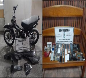 A raíz de esto personal de la División Investigaciones de esta Jefatura Departamental, mediante diferentes tareas investigativas, logra el formal secuestro del rodado en mención siendo este marca Zanella modelo Sexy 125cc, sumado a la recolección de indicios en el día de la víspera, con conocimiento de la unidad fiscal de Colón, se solicita orden de allanamiento para una vivienda, ubicada sobre calle Leguizamón al 500, lugar habitado por un joven de 17 años de edad, quien se sospecha que tuvo participación en el hecho. En esta finca se procedió al formal de varios elementos de telefonía celular Tablet, óptica del rodado los cuales guardarían relación de una denuncia realizada en el día de la víspera por un ciudadano oriundo de San josé.
