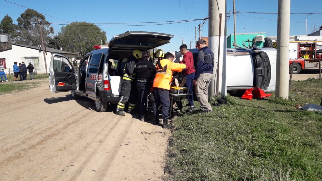 Siendo aproximadamente las 11:20 hs, de la fecha, personal policial de Comisaría San José, interviene por un accidente de tránsito, ocurrido sobre Presidente Perón y Maipú, lugar donde por causas que se tratan de establecer, se produce el vuelco de un rodado marca Chevrolet modelo Corsa, conducido por una ciudadana de 30 años, acompañada por una menor de 6 años de edad, Como consecuencia está femenina fue asistida y trasladada para su correcta atención resultando con Lesiones Graves. Intervino Bomberos Voluntarios de San José y Comisaría de Jurisdicción