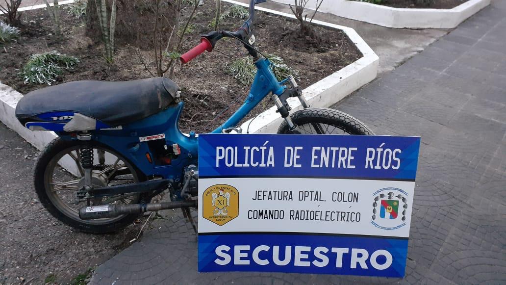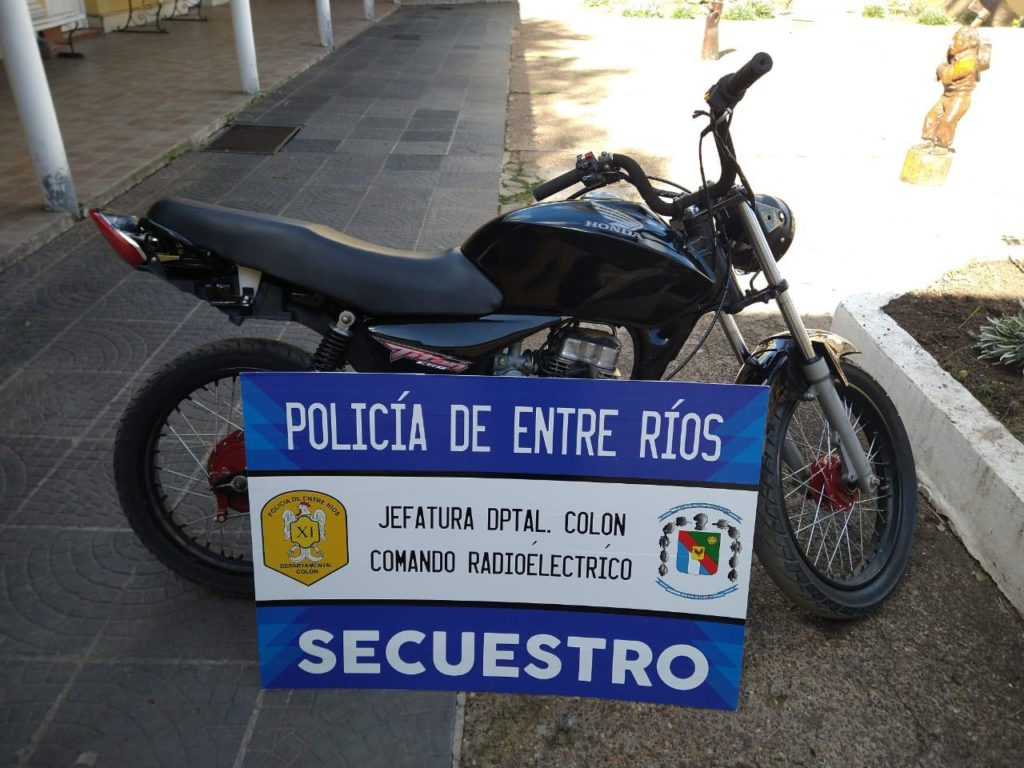 EN RELACIÓN A UNA ASISTENCIA Y PERDIDO DE COLABORACIÓN POR PARTE DE FUNCIONARIOS DE INSPECCIÓN MUNICIPAL DE COLON, PERSONAL POLICIAL SE HACE PRESENTE PARA CHEQUEAR UNA SERIE DE MOTOVEHÍCULOS QUE FUERON RETENIDOS POR RUIDOS MOLESTOS Y MANIOBRAS INDEBIDAS. DE ESTE CONTROL SE LOGRÓ CONSTATAR UNA CG TITÁN, RODADO QUE TENÍA UN CUADRO CORRESPONDIENTE A UNA MOTOMEL RADICADA EN VILLAGUAY, TAMBIÉN SE VERIFICÓ ADULTERACIONES EN LA MESADA DEL MOTOR, SE PROCEDIÓ AL FORMAL SECUESTRO DE LA MISMA INFORMANDO LO ACONTECIDO A LA UNIDAD FISCAL DE COLON, TRASLADÁNDOSE AL CONDUCTOR DE 22 AÑOS HASTA LA JEFATURA DEPARTAMENTAL PARA SU CORRECTA IDENTIFICACIÓN.
