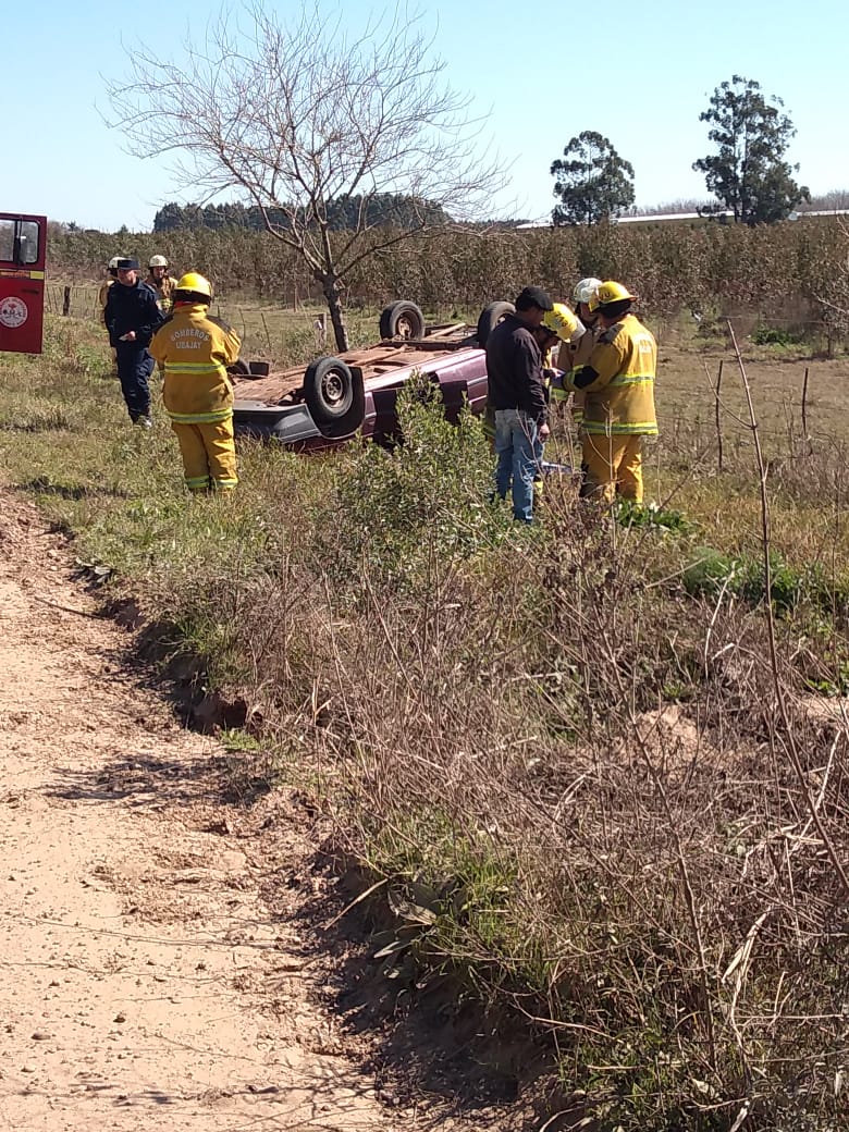 RODADO VOLCÓ CAMINO A COLONIA HUMAITÁ – PERSONAL DE COMISARIA UBAJAY INTERVINE POR ACCIDENTE DE TRÁNSITO OCURRIDO CAMINO A COLONIA HUMAITÁ, LUGAR DONDE, POR CAUSAS QUE SE TRATAN DE ESTABLECER VUELCA UN RENAULT 9 QUE ERA CONDUCIDO POR UN MASCULINO DE 34 AÑOS DE EDAD, QUIEN AFORTUNADAMENTE RESULTÓ ILESO.