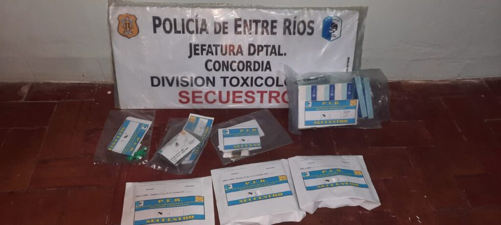 Personal de División Toxicología de  Jefatura Concordia, con colaboración del Grupo Especial, realizó anoche, allanamiento por causa en trámite P/S/Infracción Ley 10.566,  en zona sur.    Se secuestró sustancia estupefaciente (Cocaína) fraccionada,  teléfonos celulares, balanza de precisión,  elementos de estiramiento.  Se procedió a la detención de un masculino de 40 años, y se identificó a dos personas de 37 y 43 años.