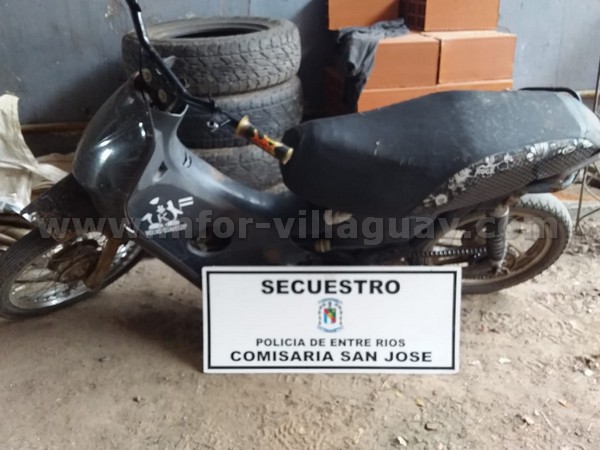 En horas de la tarde de la hoy, en recorridas de prevención, personal de comisaria San José, interceptó en el km 150 de la autovía José Gervasio Artigas, un masculino que se encontraba al lado de una motocicleta, atento a esto y luego de realizar una identificación de este masculino de 32 años, domiciliado en barrio San Francisco de Colón, consecuentemente se procedió a verificar el rodado y se constató que este, presentaba adulteraciones en número de motor. Se comunica la novedad al Fiscal de turno y se continúa con las actuaciones de estilo.