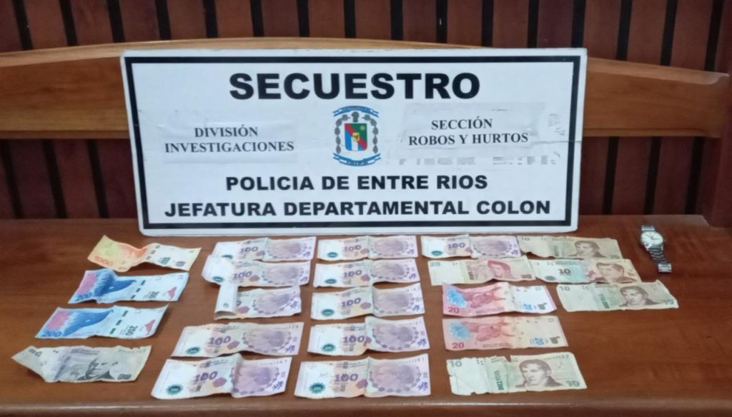 EN LA MAÑANA DE HOY 07.20 UN CIUDADANO SE PERCATA DE LA PRESENCIA DE UN MASCULINO DENTRO DE SU VIVIENDA Y POSTERIOR A ESTO NOTÓ LA FALTANTE DE UNA BILLETERA CON DINERO EN EFECTIVO, DOCUMENTACIÓN, UN RELOJ, Y UNA CADENA CON CRUCIFIJO. ATENTO A ESTO, CON CONOCIMIENTO DEL FISCAL DE TURNO, PERSONAL DE DIVISIÓN INVESTIGACIONES EMPRENDIÓ LA BÚSQUEDA DE ESTE SUJETO, QUIEN FUE INTERCEPTADO CIRCULANDO DE MANERA PEATONAL EN LA INTERSECCIÓN DE CALLE BV. GÜEMES Y EVITA DE LA CIUDAD DE COLÓN, TENIENDO EN SU PODER, DENTRO DE UNA MOCHILA, UN RELOJ QUE CONCUERDA CON EL SUSTRAÍDO, COMO ASÍ TAMBIÉN ALREDEDOR DE DOS MIL SETECIENTOS PESOS. POR TAL MOTIVO SE PROCEDE A SU APREHENSIÓN Y TRASLADO HASTA LA JEFATURA DEPARTAMENTAL, DONDE QUEDÓ A DISPOSICIÓN DEL FISCAL DE TURNO DR SEBASTIÁN BLANC, POR EL SUPUESTO DELITO DE HURTO, EN TANTO LOS EFECTOS FUERON FORMALMENTE SECUESTRADOS