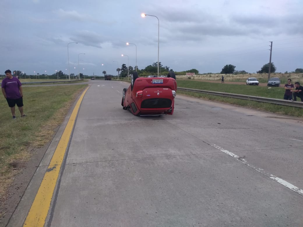 ALREDEDOR DE LAS 06:00 HORAS DE LA FECHA PERSONAL POLICIAL DEBIÓ CONCURRIR A LA AUTOVÍA GERVASIO ARTIGAS Y ACCESO DR. BASTIAN CONSTATANDO EN EL CENTRO DE LA CINTA ASFÁLTICA UN AUTOMÓVIL MARCA RENAULT SANDERO. EL CUAL ERA CONDUCIDO POR UN CIUDADANO DE 36 AÑOS DE EDAD, ORIUNDO DE LA PROVINCIA DE BUENOS AIRES, ACOMPAÑADO POR OTRO JOVEN DE 33 AÑOS DOMICILIADO EN EL MISMO LUGAR, LOS QUE CIRCULABAN POR LA AUTOVÍA DE NORTE A SUR Y AL LLEGAR A LA ALTURA DEL KM 156 POR RAZONES A ESTABLECERSE PIERDEN EL CONTROL QUEDANDO VOLCADO SU RODADO.
