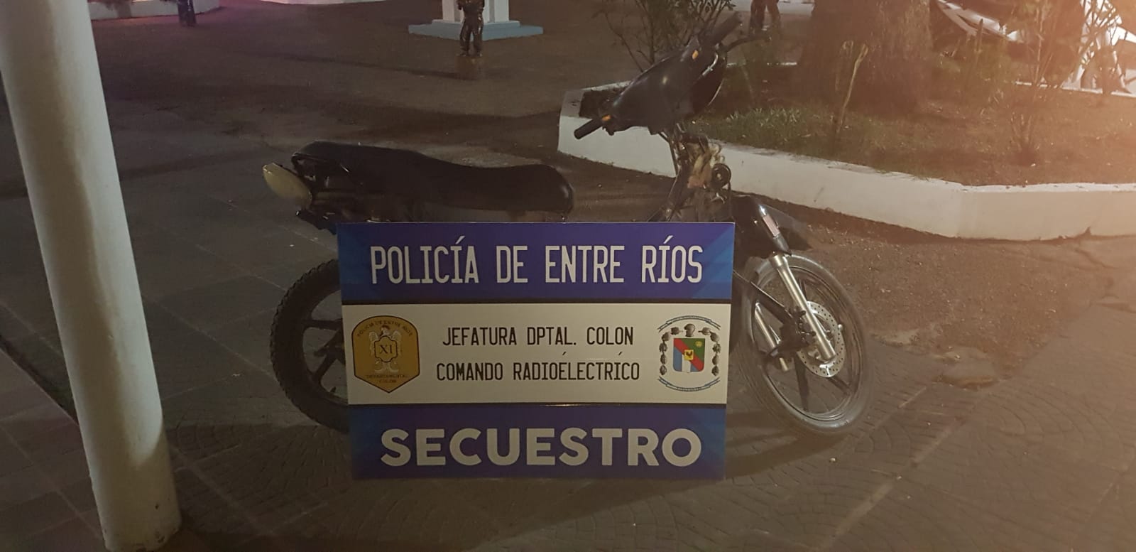 A raíz de haberse recepcionado un llamado telefónico por parte de Vecinos donde informan sobre un Motovehículo abandonado en la intersección de Combatientes de Malvinas y Pasaje Alarcón de la ciudad de Colón. Personal que se encontraba realizando recorridas de prevención, se hacen presente en el lugar y corroboran lo narrado, constatando un rodado, que al ser inspeccionado se pudo verificar que correspondería al denunciado como sustraído el día domingo 26 de diciembre del corriente año. Se da aviso lo acontecido a la fiscal de turno dra Noelia Batto y se procede al formal secuestro de esta moto. Continuando con las actuaciones de rigor.