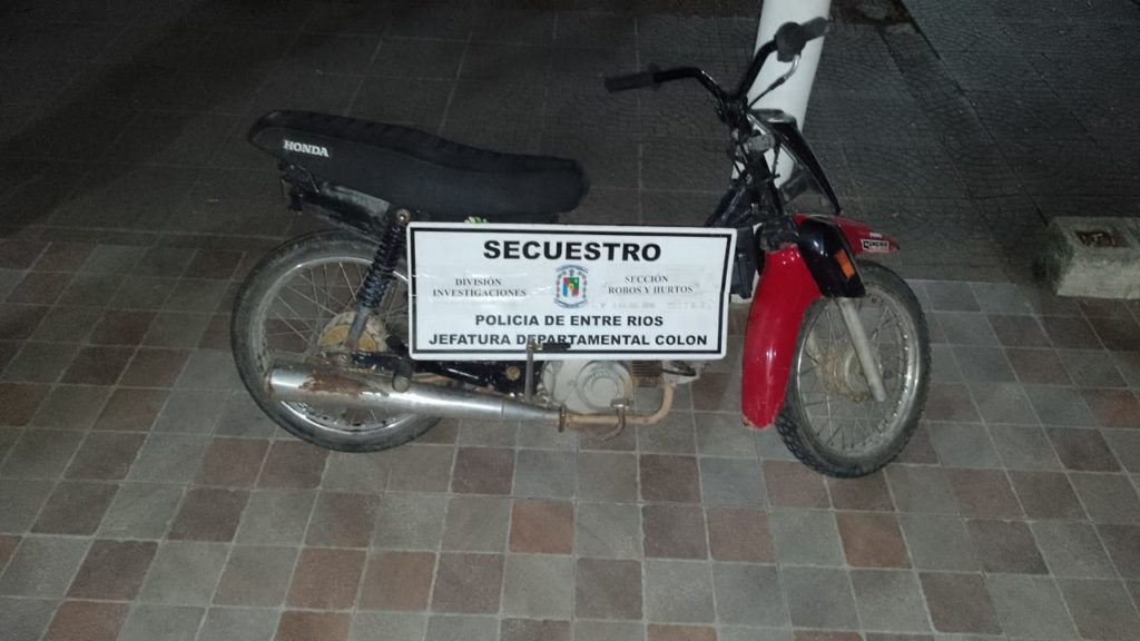 Pasada la media noche, Personal de División Investigaciones de esta Departamental, se apersonan en Camino costero Sur y Evita (bajo parque) de esta ciudad, lugar donde luego de una recorrida, se constata entre los vehículos que se encontraban estacionados, una motocicleta 110 cc, que al ser chequeada se constata que no se encontraba registrada en el sistema. Al hacerse presente un masculino quien dice ser su dueño se le solicita la documentación, manifestando carecer de la misma. Ante esta situación luego de acceder a los permisos correspondientes se verificó el rodado y se encontró una supresión en el número de cuatro. Atento a esto se comunica lo acontecido a la fiscal de turno Dra Micaela Di Pretoro y se procede a al formal secuestro de esta moto, iniciándose actuaciones de oficio para establecer real propiedad y procedencia. En tanto el masculino fue trasladado para su correcta identificación.