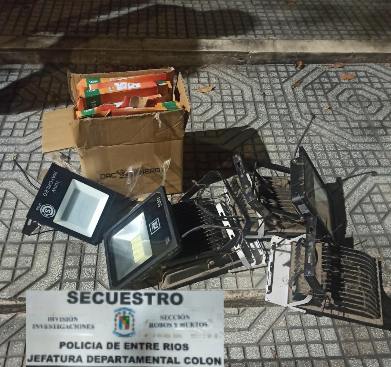 En horas de la madrugada en zona de calle Sourigues y San Martín de nuestra ciudad, personal policial que se encontraba de recorridas de prevención, observa a cuatro jóvenes, mayores de edad, que transportaban varios reflectores. Al ser debidamente identificados y consultados por el origen y procedencia de los elementos no pueden dar una versión convincente. Por tal motivo se procedió al secuestro de los mismos. Iniciándose una causa penal para establecer real procedencia de los efectos hallados.-